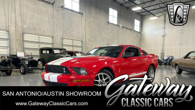 Gateway Classic Cars of San Antonio/Austin is excited to present this 2007 Ford Mustang GT 500. This vehicle boasts a striking Torch red exterior that complements its aggressive stance and timeless design. Step inside to find a luxurious black and red leather interior, offering a blend of comfort and style that enhances every journey. At the heart of this beast lies a Supercharged 5.4 Liter V8 engine, delivering exhilarating performance and power. Paired with a 6-speed manual transmission, this Mustang promises an engaging and dynamic driving experience that will satisfy any automotive enthusiast. Equipped with a range of features designed to enhance your driving pleasure, this Mustang GT 500 includes air conditioning to keep you comfortable on the road, and aluminum wheels that add a touch of sophistication to its overall appearance. The entertainment system features an AM/FM radio and CD player, ensuring you have access to your favorite tunes wherever you go. For added convenience, this vehicle comes with cruise control, allowing for relaxed long-distance drives. Safety and practicality are also well catered for, with driver and passenger airbags, seatbelts, and a rear defogger ensuring peace of mind in various driving conditions. The power features include power brakes, power locks, power seats, power steering, and power windows, all designed to provide ease of use and enhance the driving experience. Performance tires further enhance the vehicle’s handling and grip, making every drive a thrilling adventure. The tilt steering wheel allows for a customized driving position, ensuring comfort for drivers of all sizes. This 2007 Ford Mustang GT 500 is a blend of performance, style, and comfort, making it a standout choice for those who appreciate the legacy of the Mustang name. Whether you’re cruising down the highway or navigating city streets, this vehicle offers a driving experience that is both exhilarating and refined.
